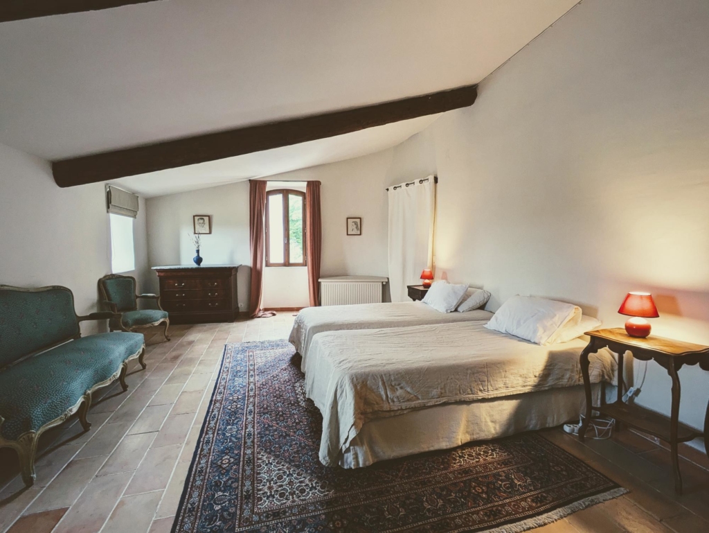Le château propose des chambres spacieuses de style provençal épuré, à occuper individuellement ou à partager à 2 ou à 3. Pour le confort de tous-tes il y a autant de salle de bain que de chambres.