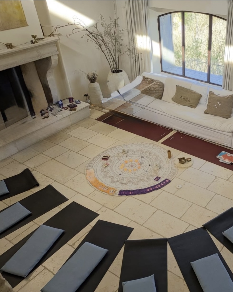 - Dimanche : méditation, yoga, brunch, temps libre/balade, yoga, cercle de clôture, souper, bain sonore